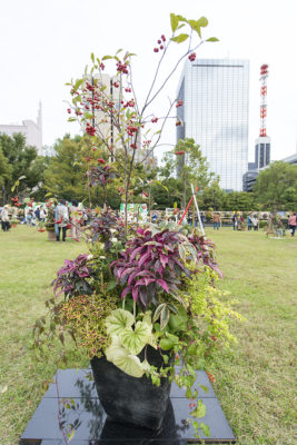 このうち、国土交通大臣賞はE&Gアカデミー東京校がライフスタイルガーデン部門に出品した「実のなる停留所」が、環境大臣賞は堀田佐智子さんがコンテナーガーデン部門に出品した「グラン・ブーケ~ルドン展より~」が、農林水産大臣賞は赤羽玲子さんがハンギングバスケット部門に出品した「秋化粧」がぞれぞれ受賞した。