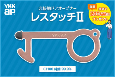 「PRODUCTS PARK 2021」に来場し、アンケートに答えた人の中から、毎週抽選で200人に、非接触ドアオープナー「レスタッチⅡ」をプレゼントする。